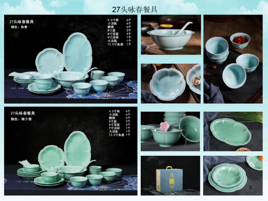 龙泉瓯江青瓷餐具系列-素月、咏春、祥瑞、金镶玉