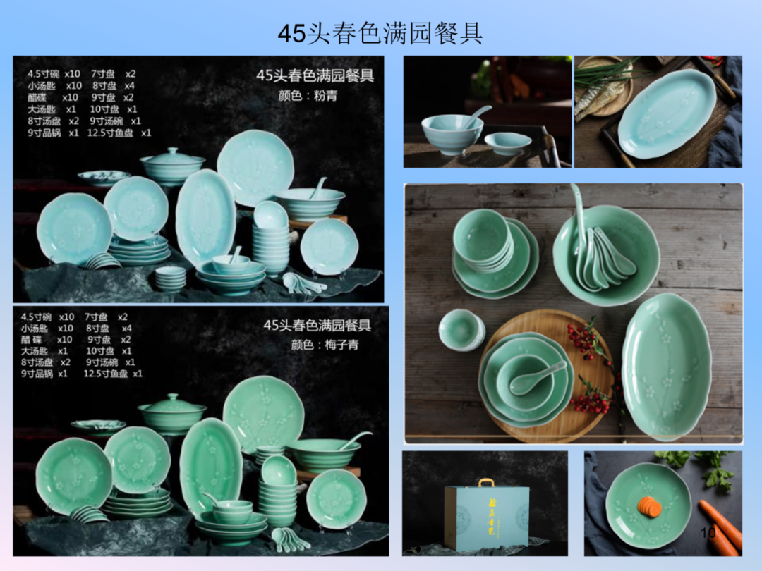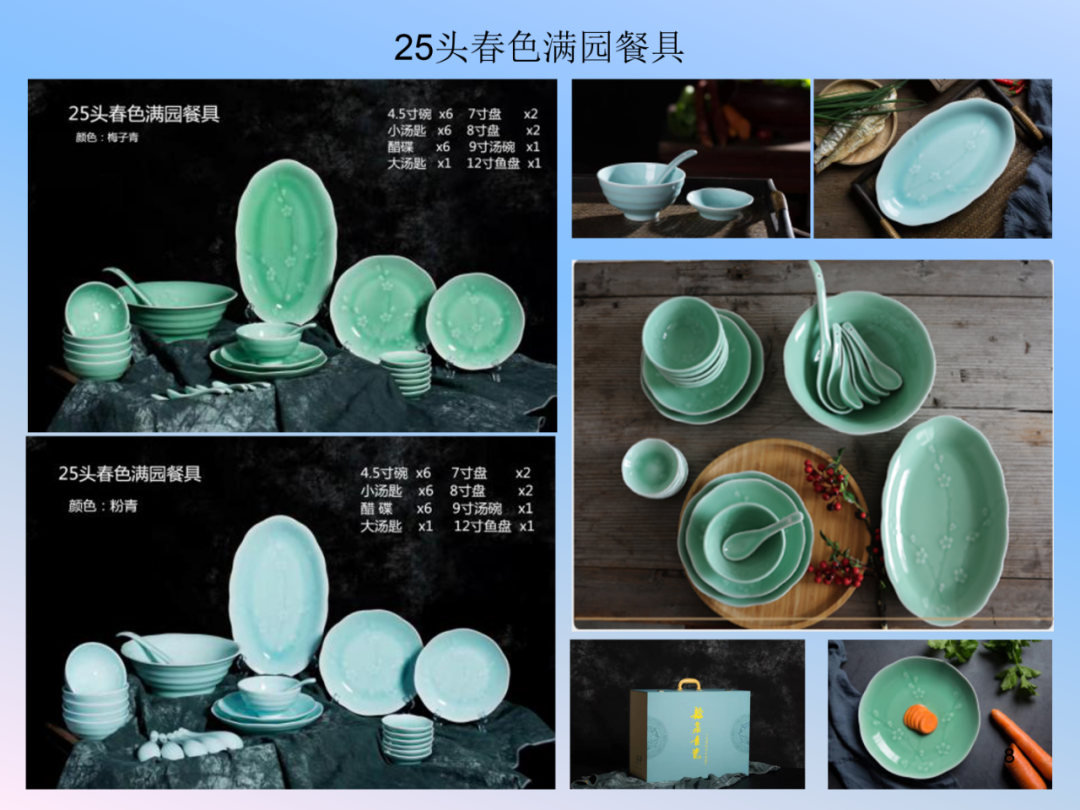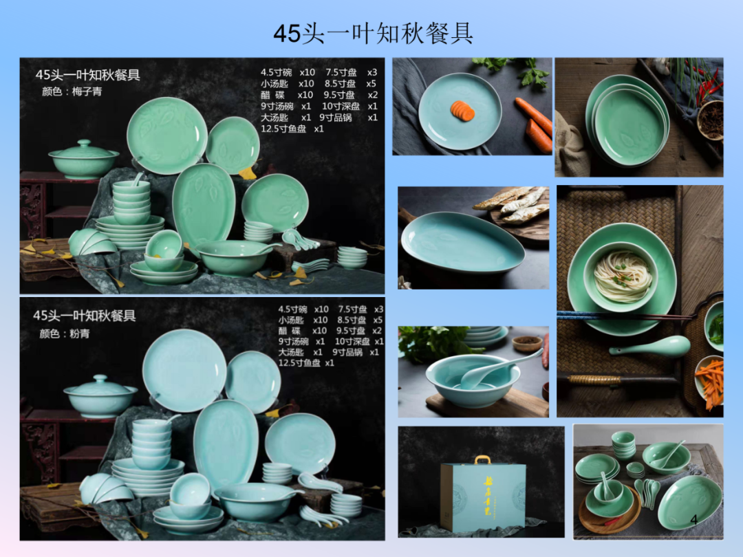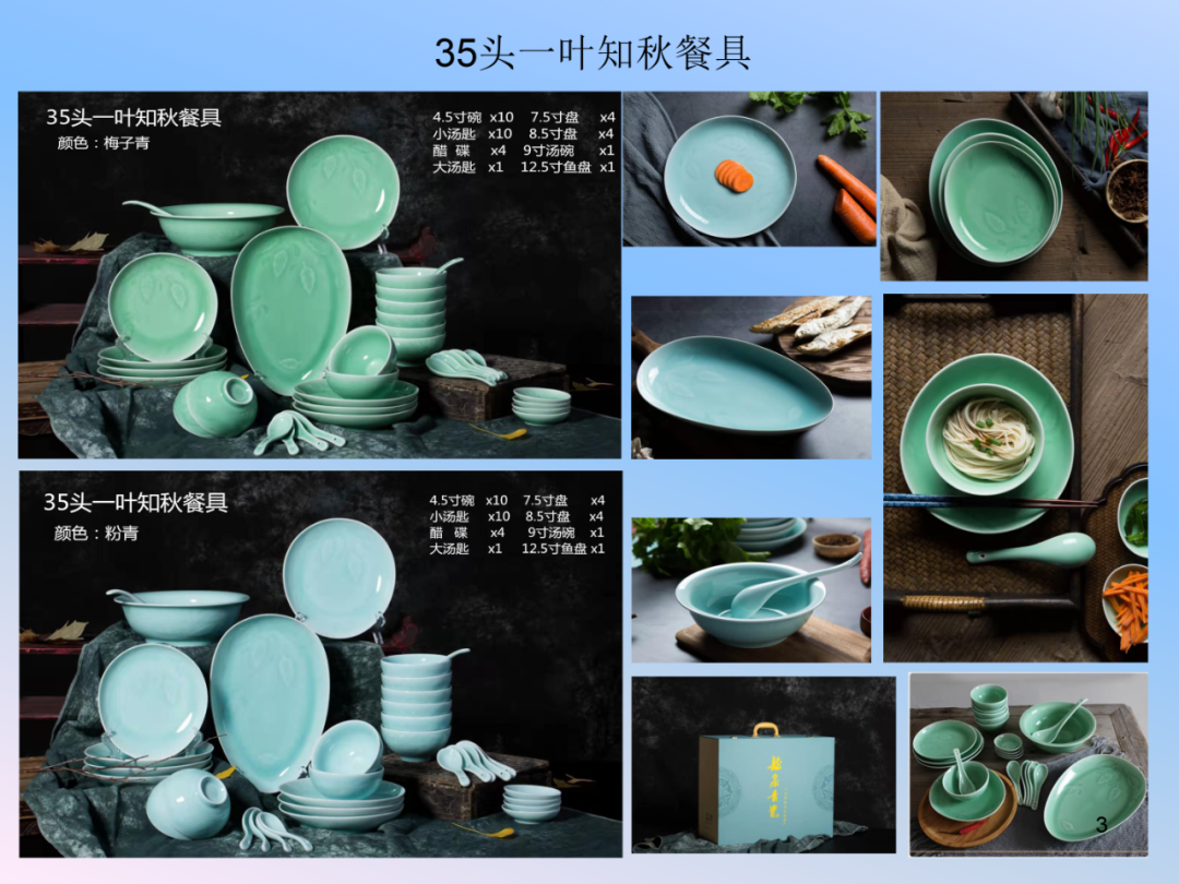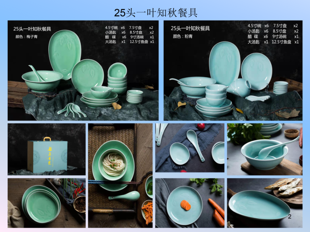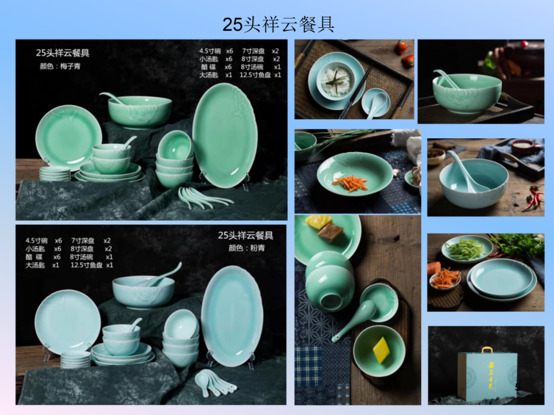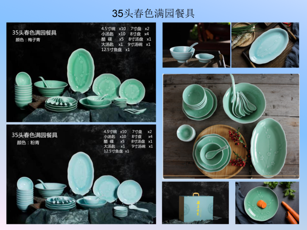 龙泉瓯江青瓷餐具系列-祥云、春色满园、一叶知秋