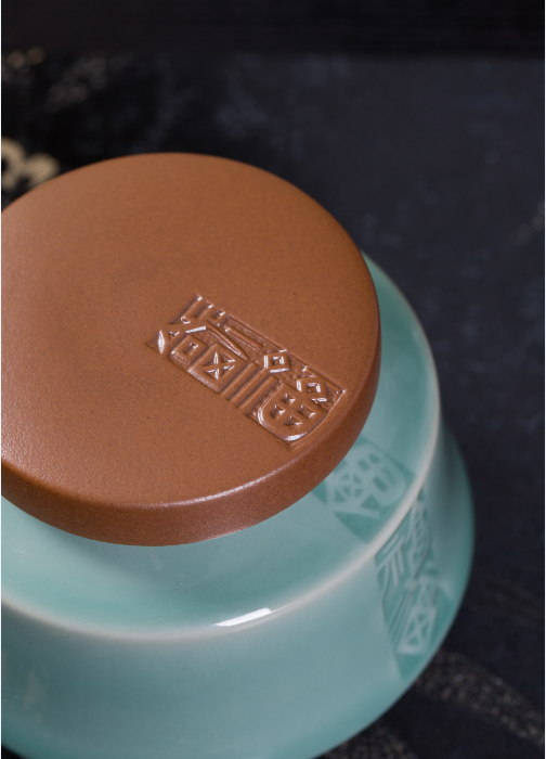 它以龙泉青瓷的独特工艺制作而成,