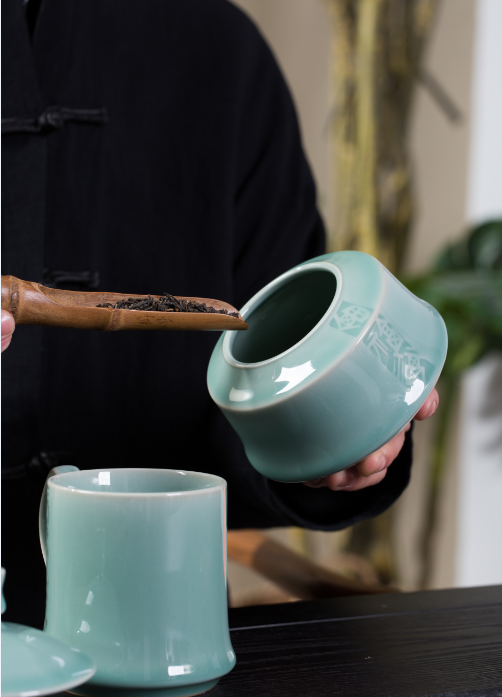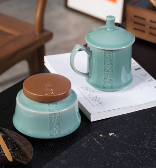 杯身和茶叶罐上都雕刻吉祥的福字,每一件都经过精心制作,造型别致。让您在品茶的过程中,尽享舒适与便捷。