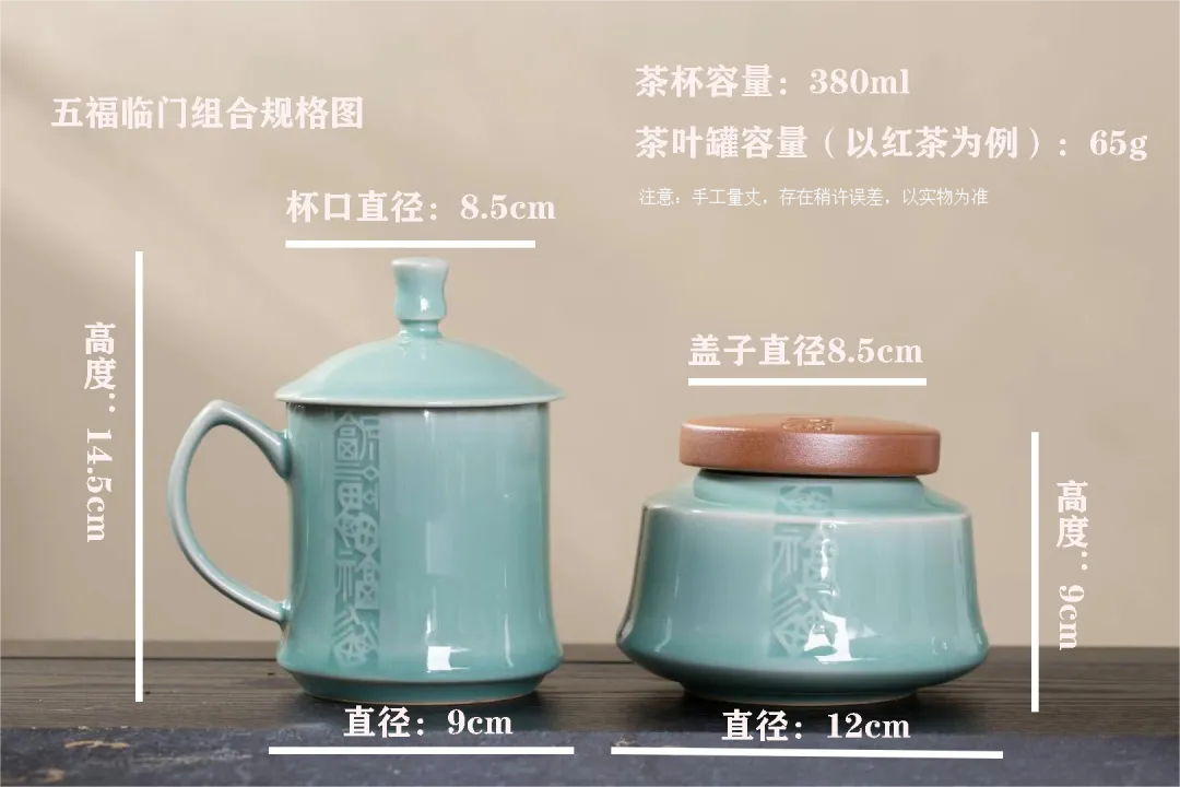 五福临门组合茶具包括茶杯、茶叶罐,设计非常独特,将传统与现代完美结合,一套完美的组合茶具,功能齐全,方便实用。